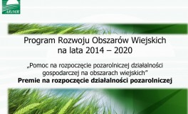 Agencja Restrukturyzacji i Modernizacji Rolnictwa w ramach Programu Rozwoju Obszarów Wiejskich ogłasza nabór wniosków w ramach podziałania 6.2 ?Pomoc na rozpoczęcie pozarolniczej działalności gospodarczej na obszarach wiejskich?Nabór wniosków od dnia 29 października do dnia 30 listopada...