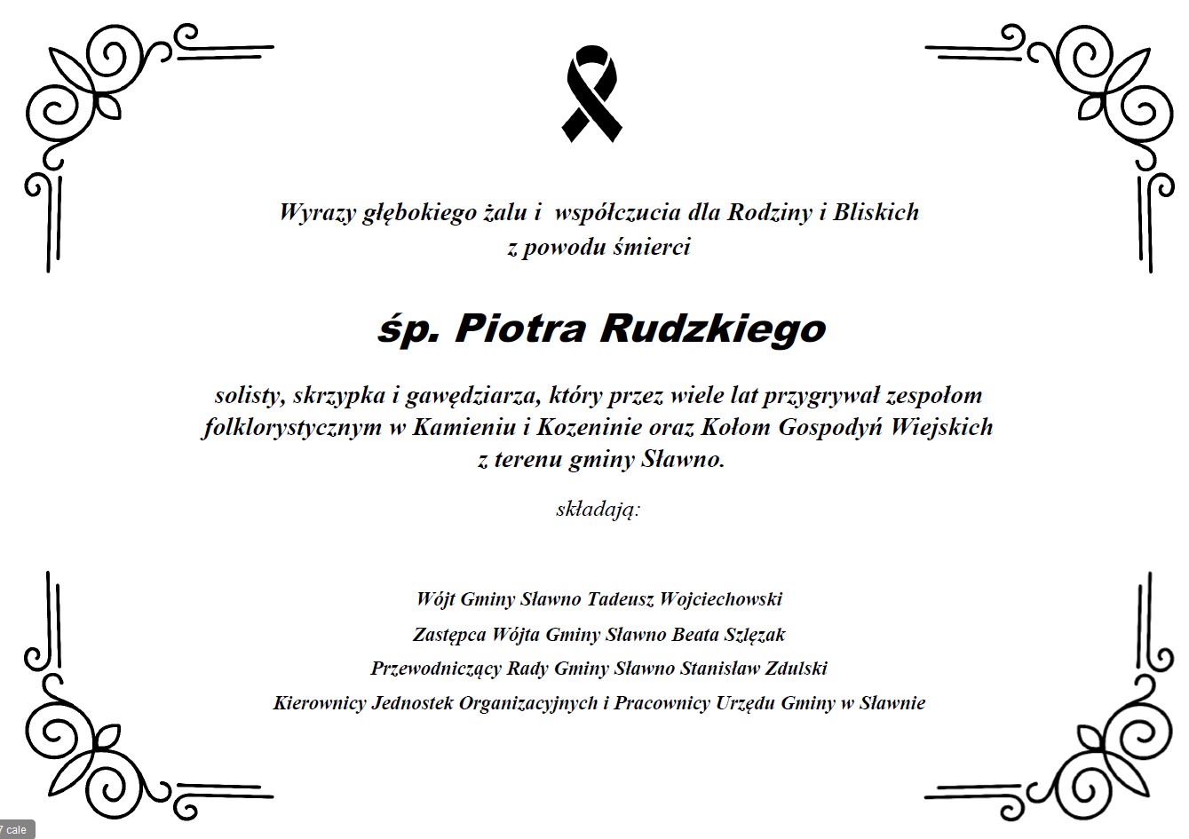 Wyrazy głębokiego żalu i współczucia dla Rodziny i Bliskich z powodu śmierci śp. Piotra Rudzkiego
