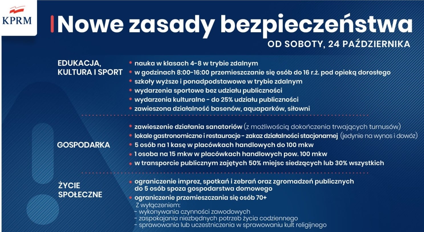 Od soboty 24 października, cała Polska zostaje objęta czerwoną strefą.