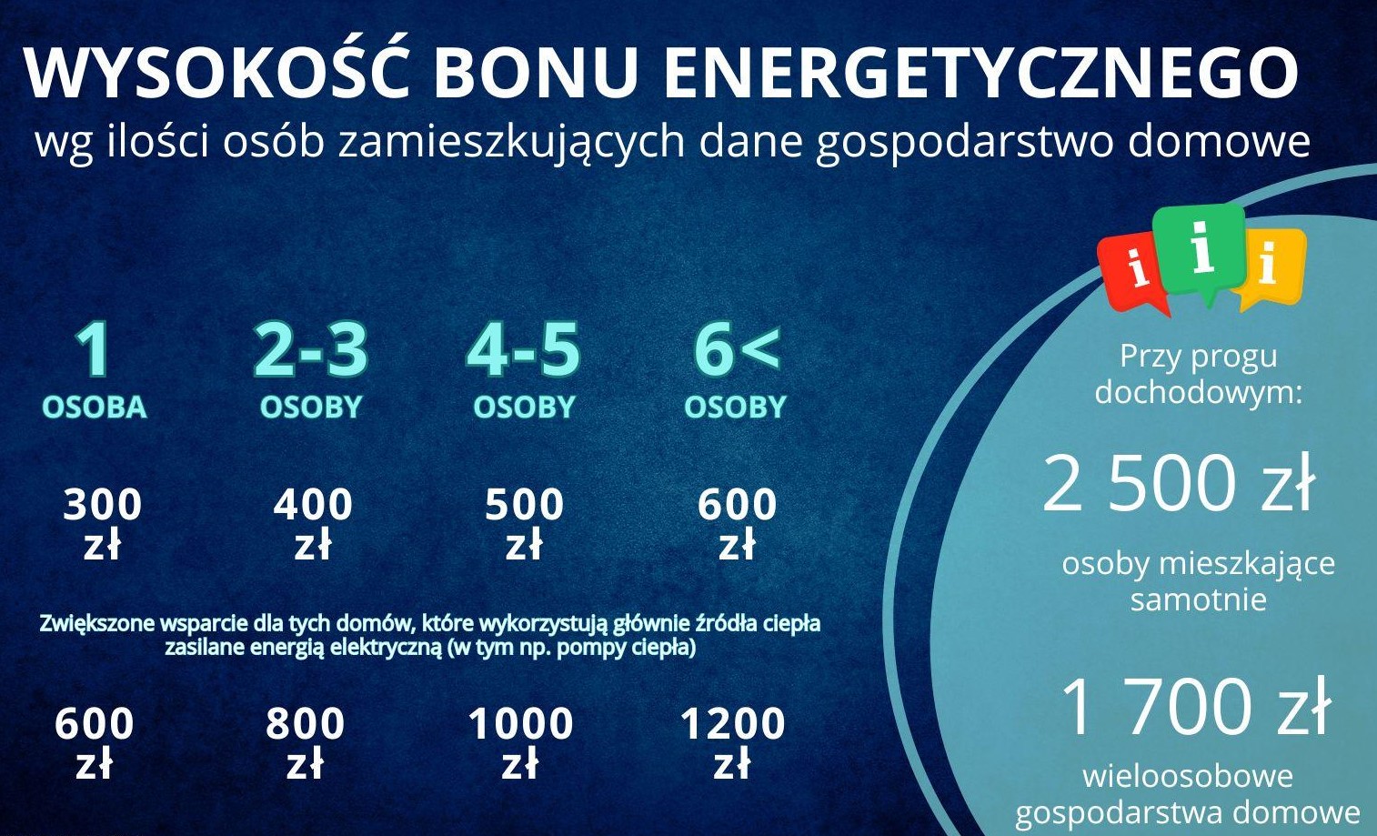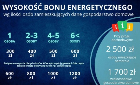 Wysokość bonu energetycznego jest zależna od wielkości gospodarstwa domowego, jak i od jego głównego źródła ogrzewania.